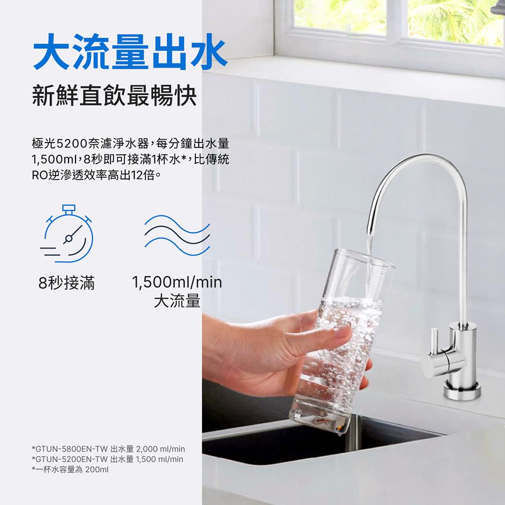4. 超大流量,8秒鐘一杯直飲水(1,500ml/min)。